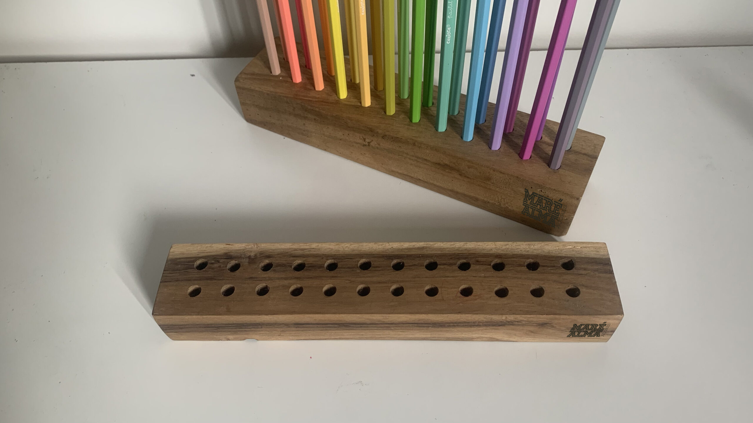 An organizer for 24 wooden pencils for an easy-to-access desk, maintaining an aesthetic work environment.